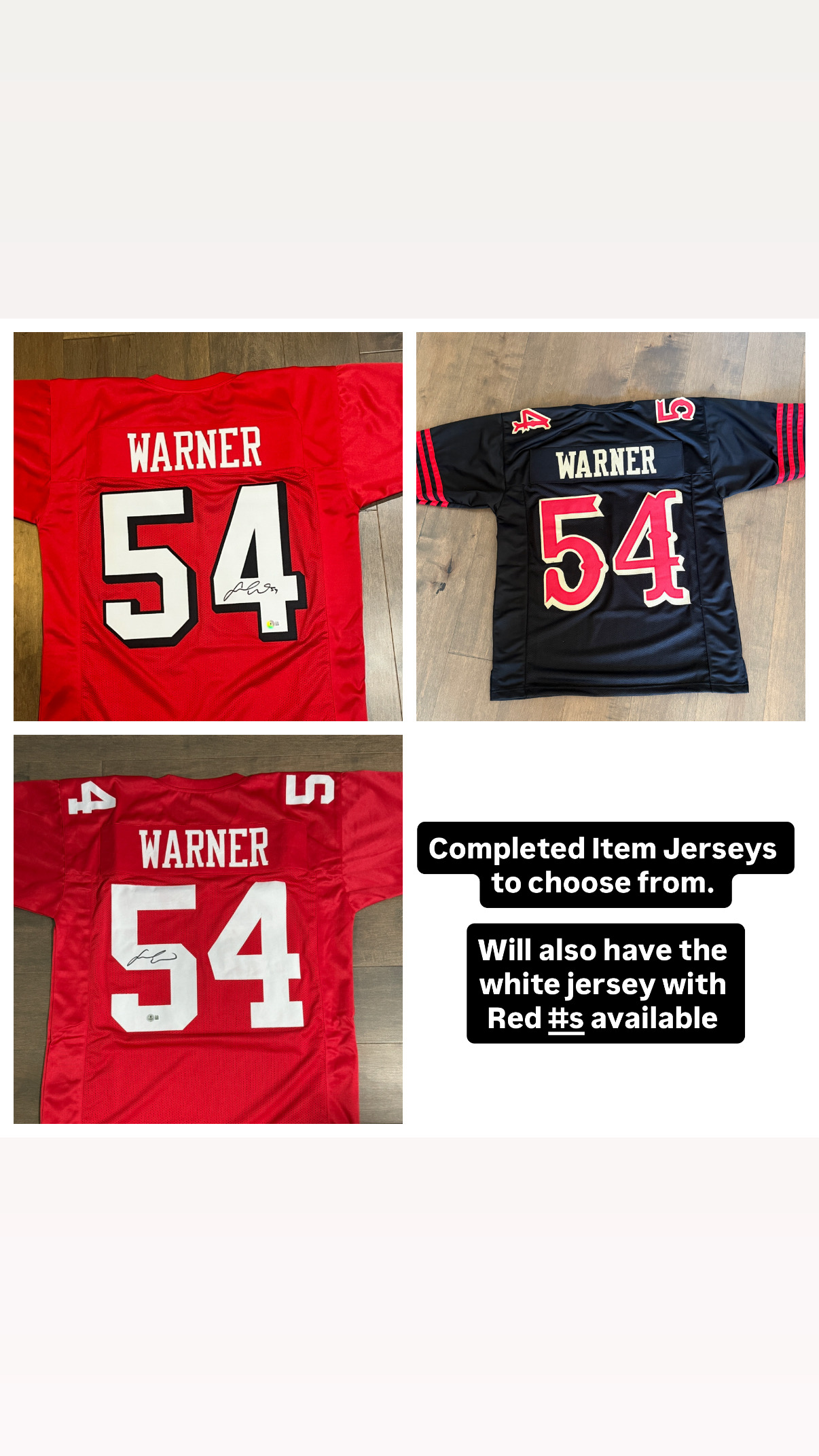 - $185.00 – Plain Red Jersey, Red Jersey with throwback #’s or White Jersey with Red #’s (Not shown but will have)