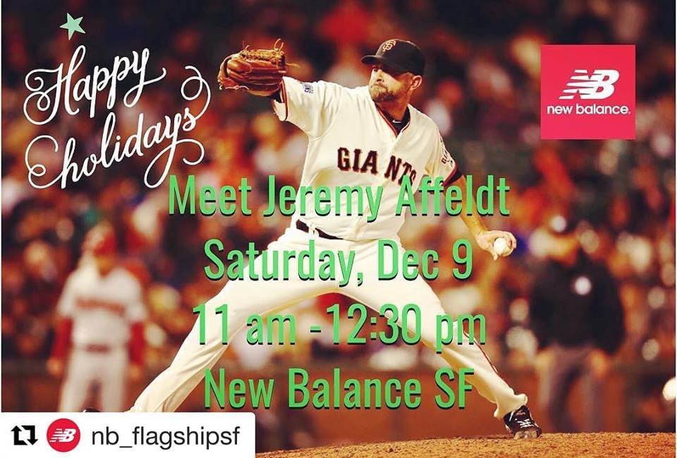 ⚾️ On 12/9 from 11am-1230pm @nb_flagshipsf welcomes @jeremyaffeldt for a personal meet and greet experience. **Simply make a purchase of $30 or more to meet Jeremy and get 1 piece of personal memorabilia signed