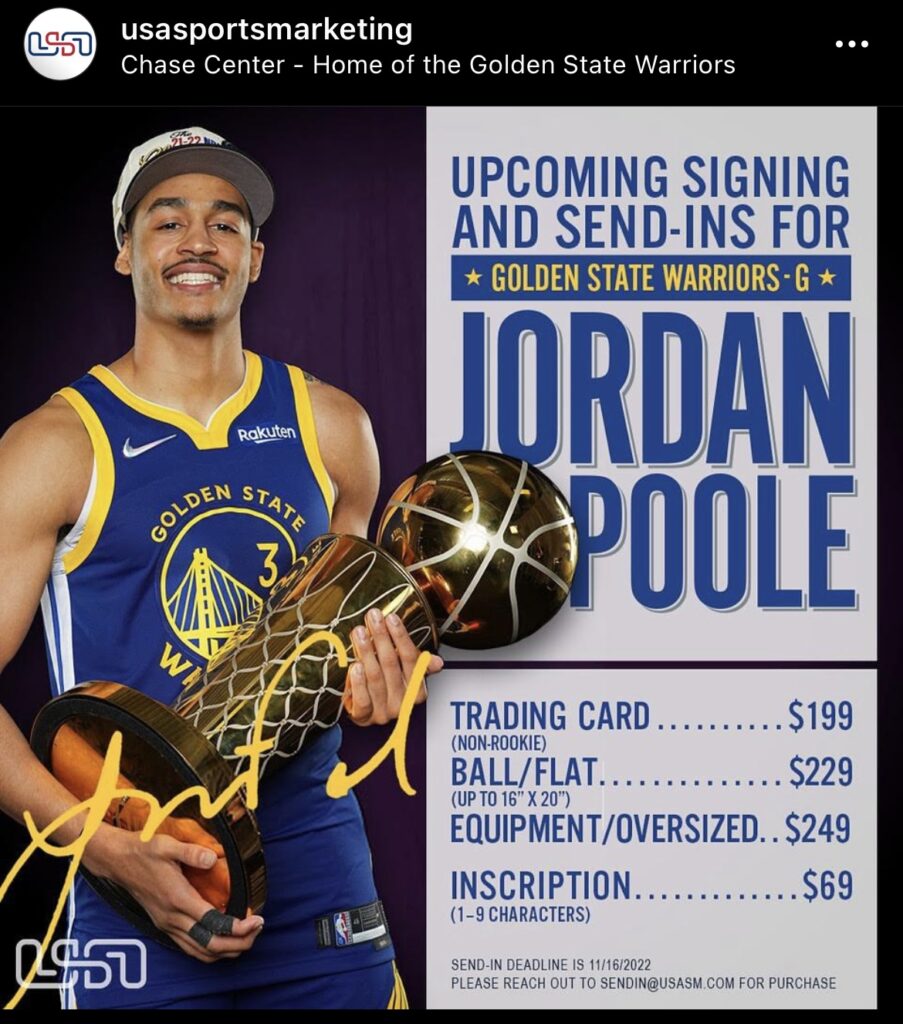 Jordan Poole Autograph pricing on YOUR MAIL IN Item(s):