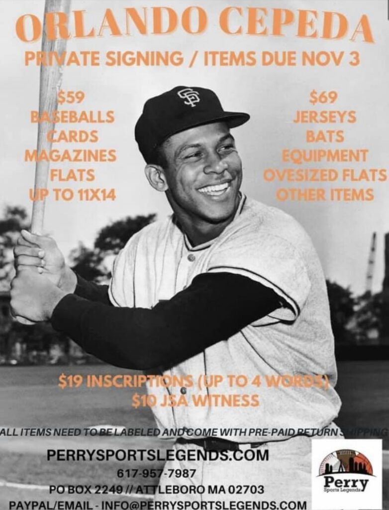 Orlando Cepeda Autograph Event – PRIVATE SIGNING