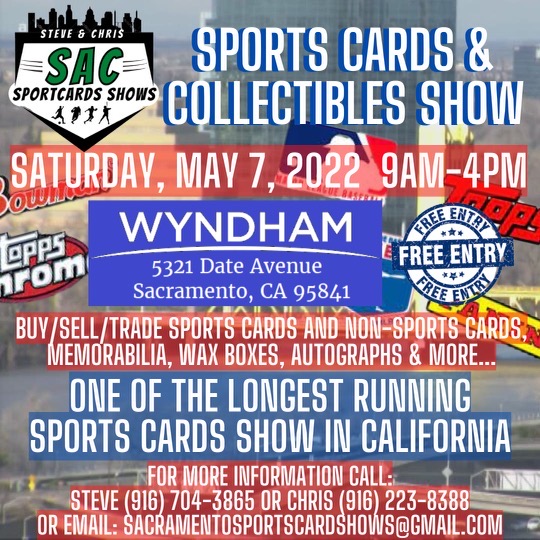 CONTACT PROMOTER: Steve Westerson at 916-704-3865 with any questions or concerns or email at sacramentosportscardshows@gmail.com